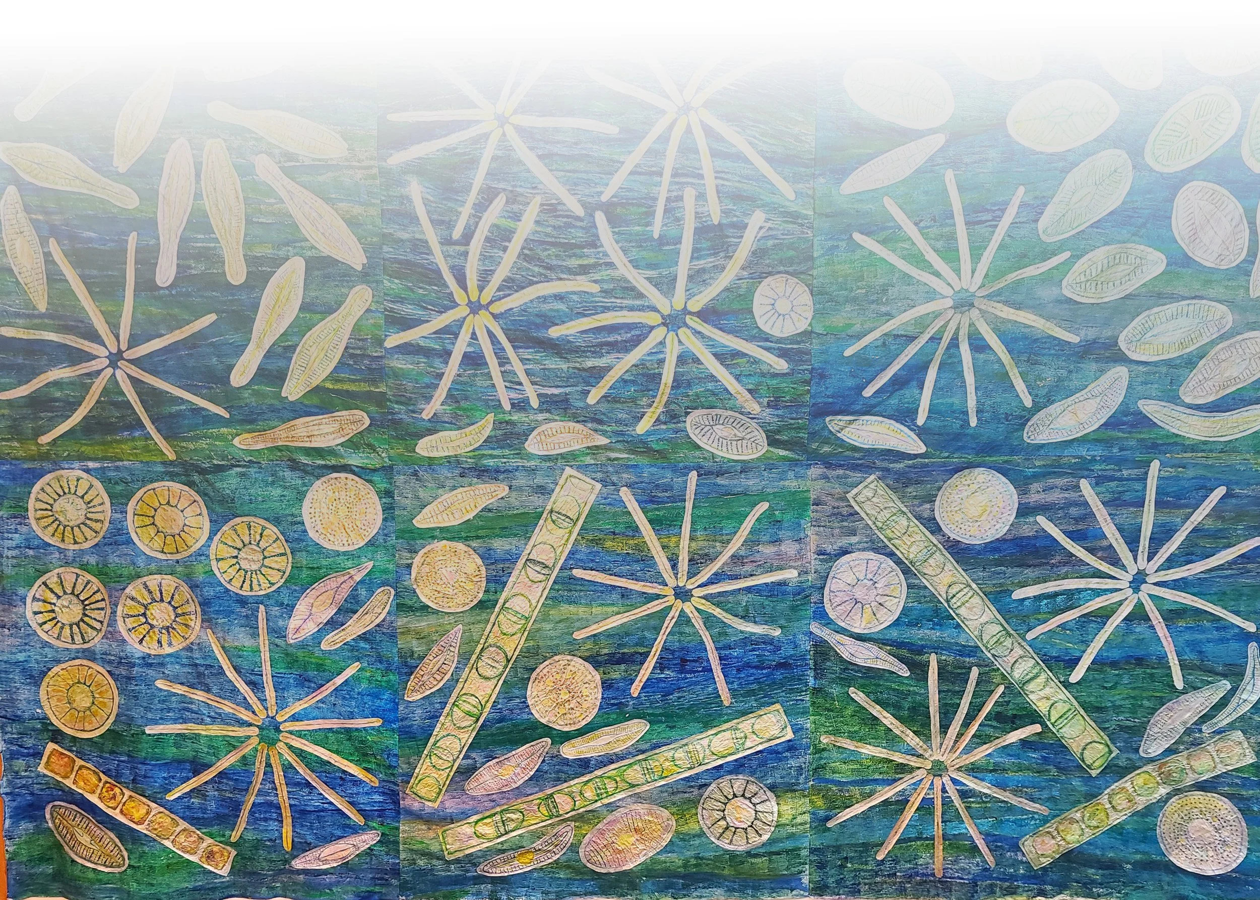 • Hand-stenciled banners created by Artistic Director Marlena Marallo. Over 150’ of images evoking cellular biology, hydrological cycles and geologic processes wrap around the interior of the Performance Tent.